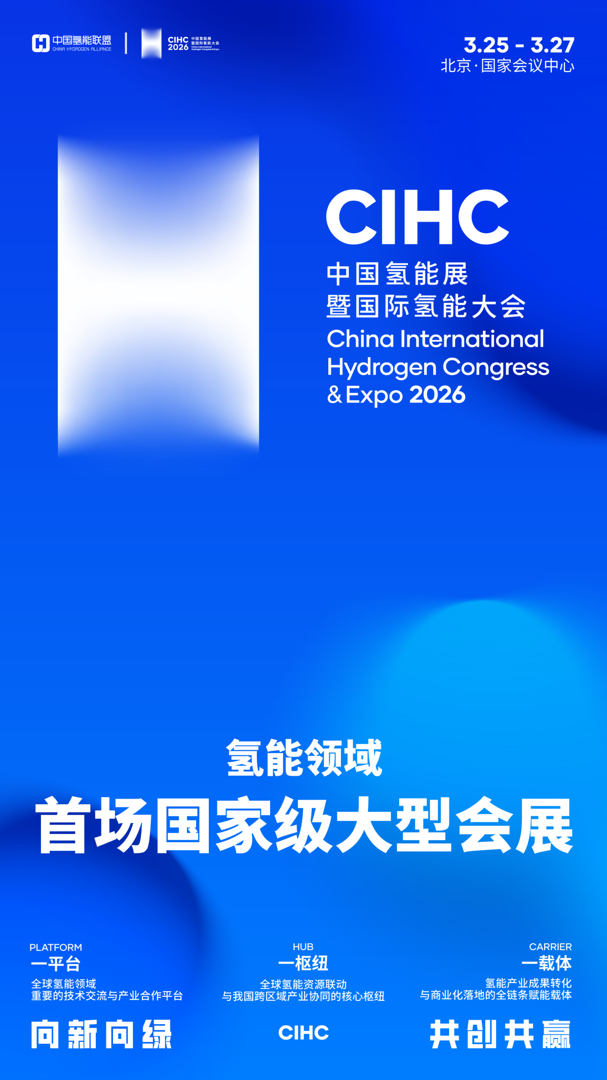 氢能作为构建新型能源体系的关键抓手正加速培育壮大,中共中央“十五五”规划明确提出要推动氢能成为新的经济增长点。为深入贯彻落实国家战略部署,3月25日至27日,由中国氢能联盟、中国电力企业联合会联合主办的2026中国氢能展暨国际氢能大会(简称CIHC 2026)将在北京国家会议中心隆重举办。作为“十五五”开局之年氢能领域的首场大型会展,本届展会将全景呈现氢能制储输用全链条创新成果,链接全球技术与商业资源,推动氢能产业高质量发展,打造全球绿氢发展的风向标。