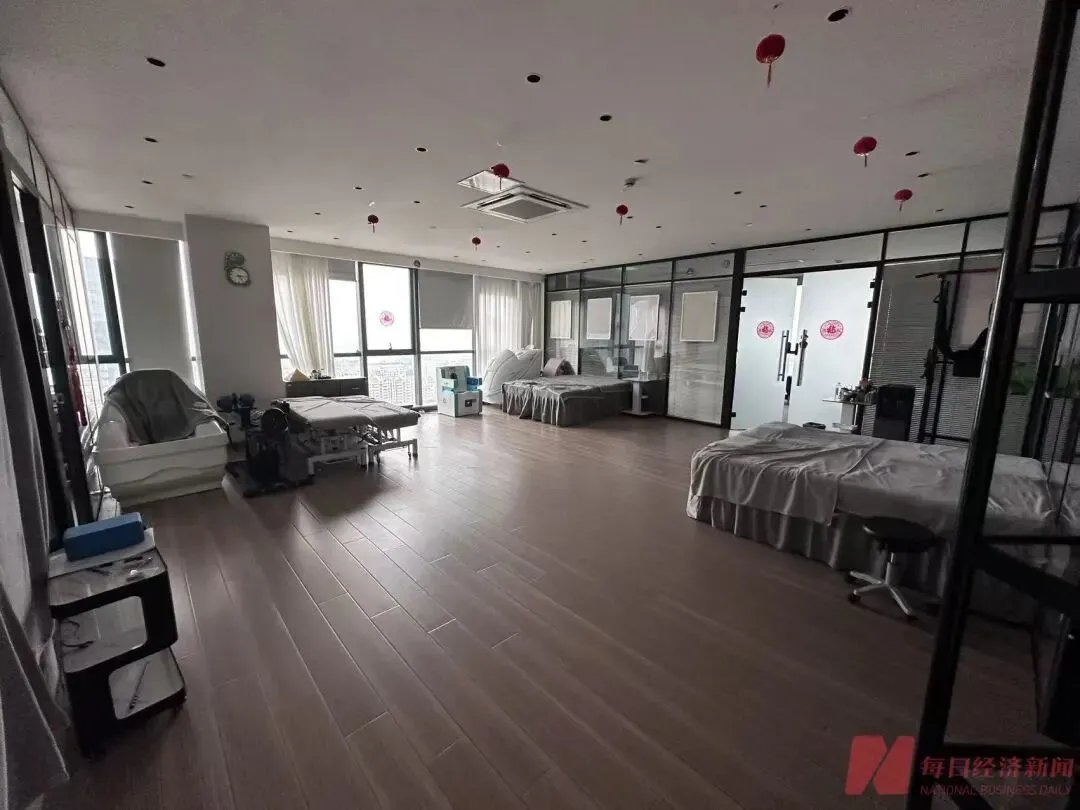 记者也探访了总部的所谓“治疗区”,这部分由一块面积较大的开放区域与几个独立房间共同组成。开放区域内摆放着数张铺有床单的床位,以及多台外观各异的设备,整体布置类似理疗、美容店。其中,靠窗角落摆放着一台造型醒目的设备,外观形似按摩椅;另一款座椅设备的面板上则印有“美学热疗椅”字样。场地中央较为空旷,几张床位和器械分散陈列,显得有些杂乱。除此之外,该“治疗区”内部还设置有两三个单独房间,房门玻璃上标有“调理室A”“调理室B”等字样,房间内各摆放着两张床位。