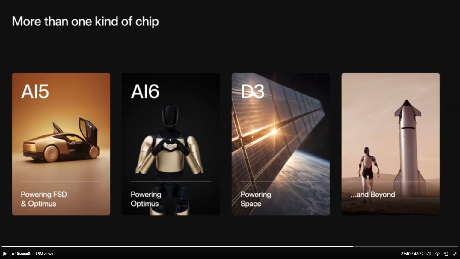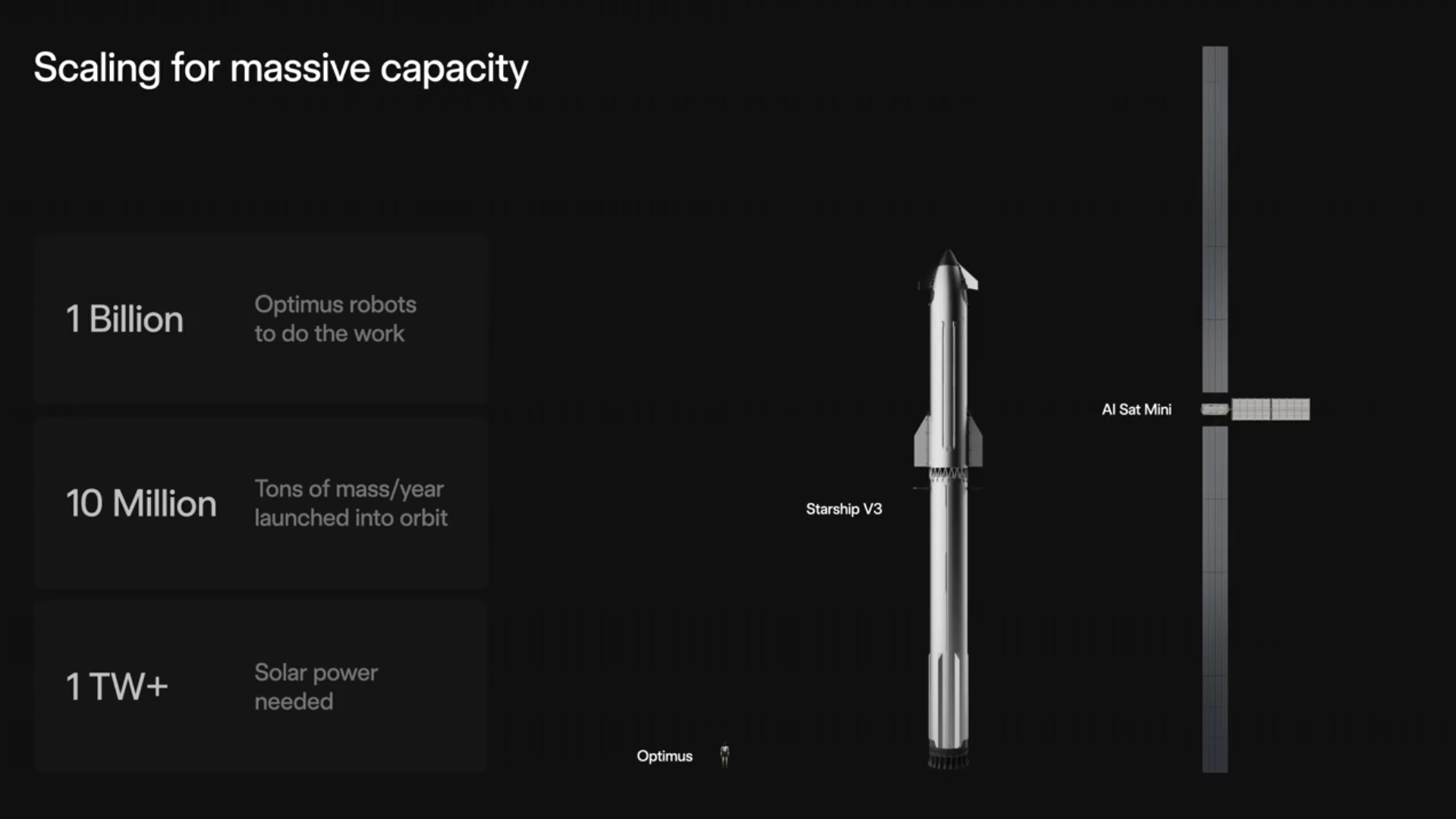 发布会上,马斯克还展示了未来迷你人工智能数据中心卫星的设计图,其是SpaceX大型卫星系统的一部分,旨在进行复杂的太空计算。今年1月,SpaceX为此向美国联邦通信委员会申请发射100万颗数据中心卫星。