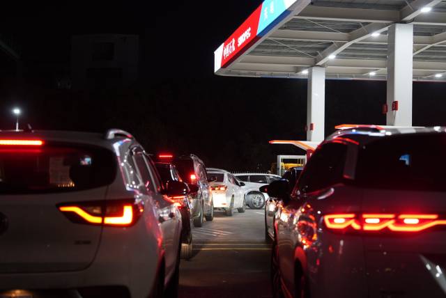 22日,南方+记者看到广州、中山多个加油站出现排队加油的场景。有车主表示,“排队需要差不多1小时。”