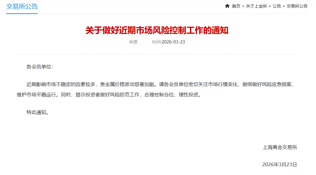 上金所发布通知,近期影响市场不稳定的因素较多,贵金属价格波动显著加剧。请各会员单位密切关注市场行情变化,做细做好风险应急预案,维护市场平稳运行。