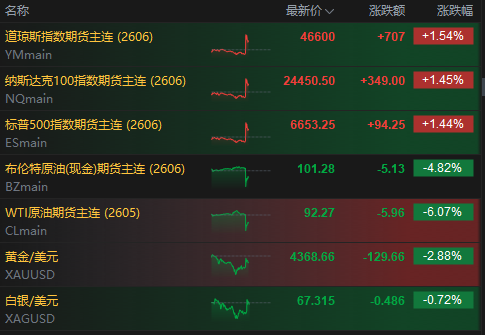 受该消息影响,美股期货盘前由跌转涨,三大指数期货一度涨超2.4%(现收窄至1.4%),先前三大期指均跌约1%。富时中国A50指数期货直线拉升,涨近1%。
