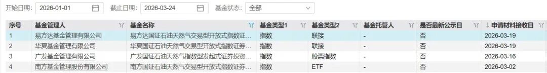 Wind数据显示,年内已有12家基金公司上报油气主题基金,3月以来便有4家密集申报:南方基金上报石油天然气ETF、广发基金上报石油天然气场外发起式指数基金,华夏基金和易方达基金则分别上报石油天然气ETF联接基金。