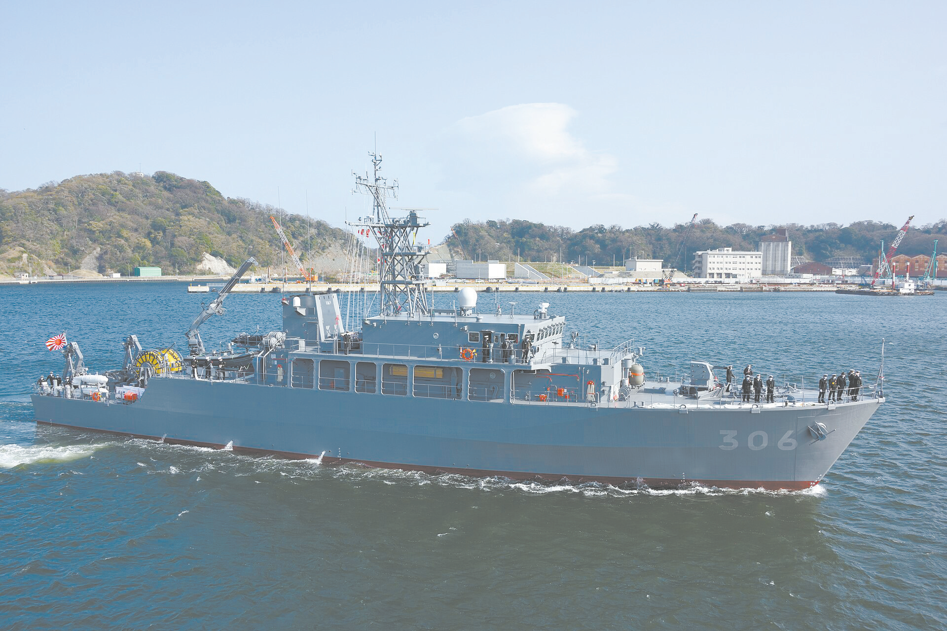 其中从2017年开始服役的“淡路”级远洋扫雷舰是“初岛”级扫雷/猎雷两用艇之后的新一代专用扫雷舰,计划建造6艘,已经服役4艘。同此前已经退役的“初岛”级与“八重山”级扫雷舰相比,其舰体材料由传统木材更换为玻璃钢,不仅更耐用,而且磁性极低,能有效避免引爆磁性水雷。“淡路”级扫雷舰还配备可变深度声呐,并可搭载无人潜航器,通过无人遥控技术远距离探测并清除多种水雷。