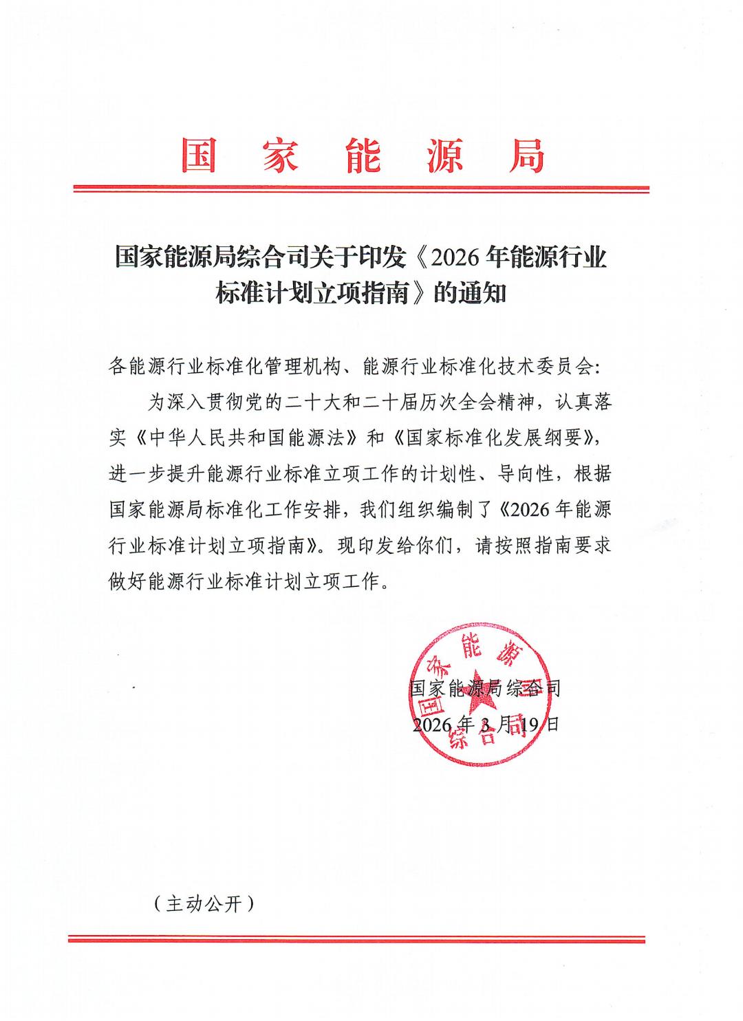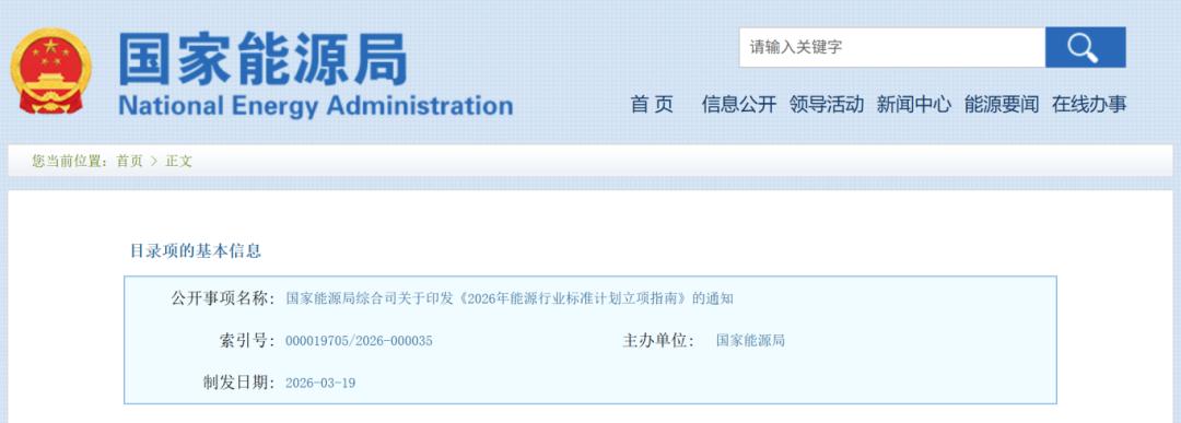 3月24日,国家能源局印发《2026年能源行业标准计划立项指南》。
