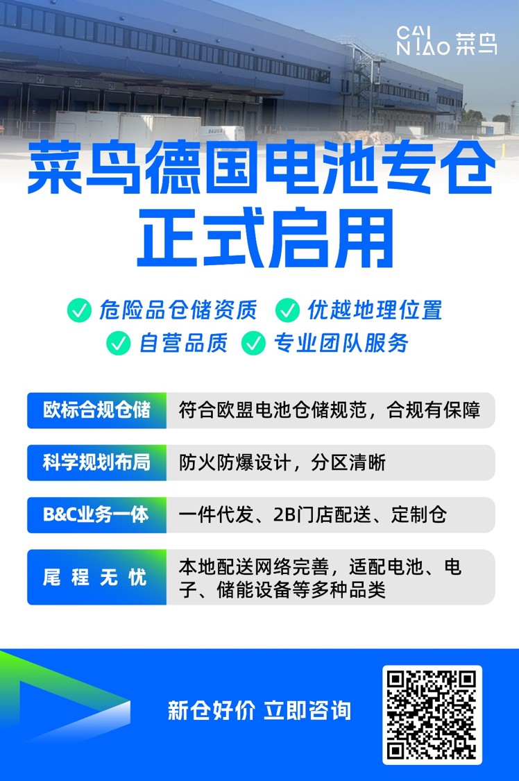菜鸟曼海姆电池专仓严格遵循欧盟及德国当地法律法规设计建造,已获得相应的危险品仓储资质。仓库还配备专业团队与定制化管理系统,能够为电池、电子、储能设备和新能源领域的出海企业提供涵盖国内集货、国际干线、目的港清关、合规仓储、本地配送的一站式供应链解决方案。