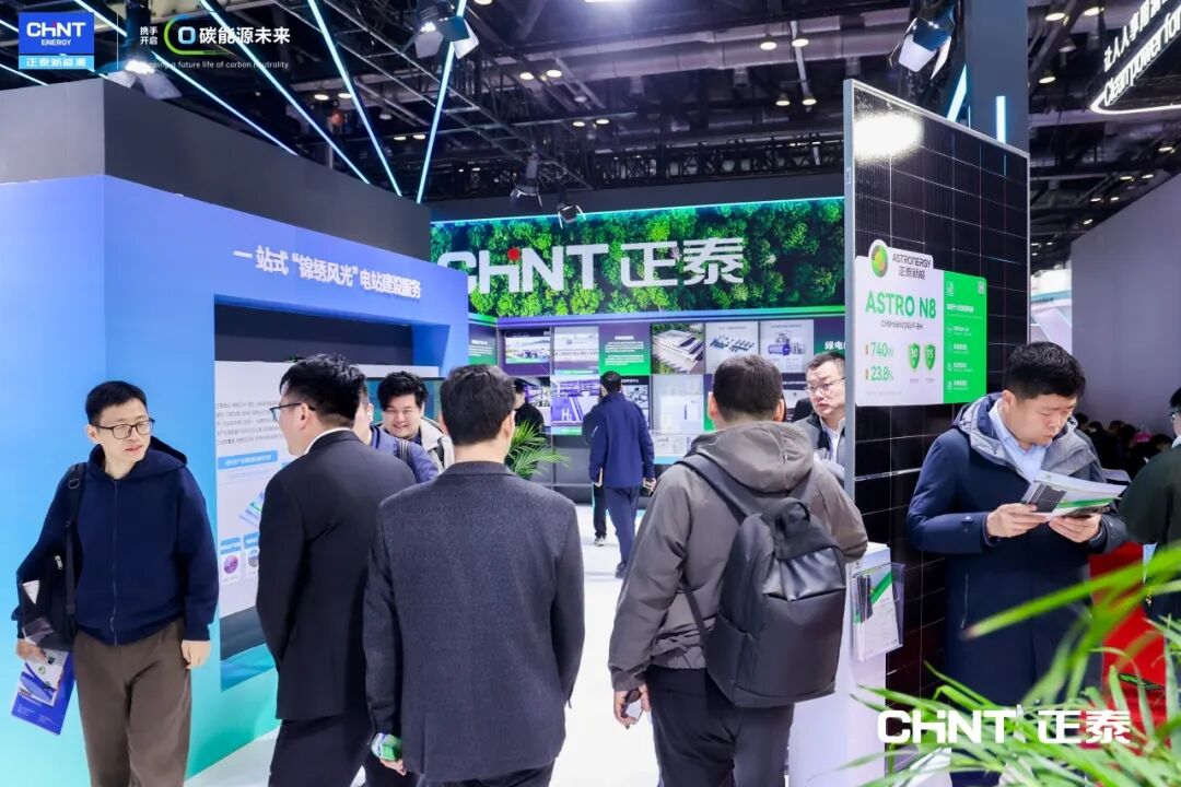 正泰新能源产业生态群集结ASTRO N型高效光伏组件,一站式风、光电站解决方案,光储解决方案,电站运维解决方案,绿电绿氢综合解决方案等重磅亮相E2003-2展位。
