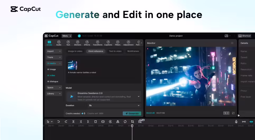此外,Dreamina Seedance 2.0 已在 CapCut 应用、桌面和网页端上线,覆盖了非洲、南美洲、中东和东南亚,更多地区即将到来。
