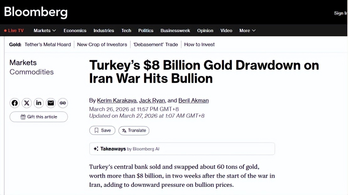 据彭博社报道,土耳其央行通过直接出售及掉期操作动用了约60吨黄金,价值超过80亿美元,这一举动对黄金价格构成了下行压力。
