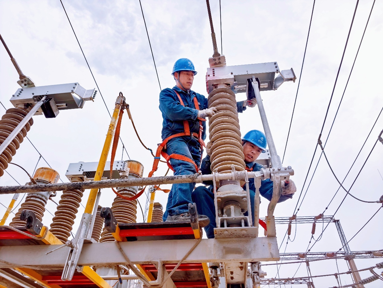 调试过程中,作业人员反复操作刀闸,通过听声音、看角度、测深度,不放过任何一个细微的偏差。与此同时,另一组人员同步完成了设备防污闪涂料的喷涂作业,为设备穿上“防护衣”,以提升其应对大风、雨雾等恶劣天气的能力。