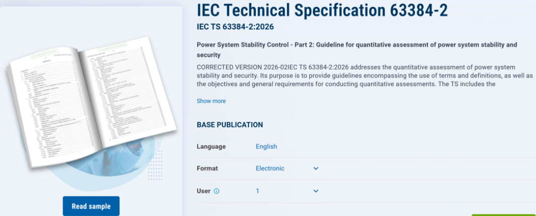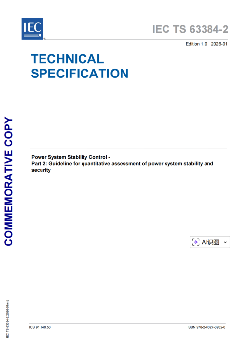 近日,国网电科院(南瑞集团)主导研制的IEC TS 63384-2《电力系统稳定控制 第2部分:电力系统安全稳定量化评估导则》正式发布。