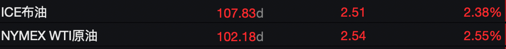 今日(30日)早间,美油、布油双双高开,目前涨幅均超过2%,ICE布油站上107美元/桶关口,WTI原油则超过102美元/桶。