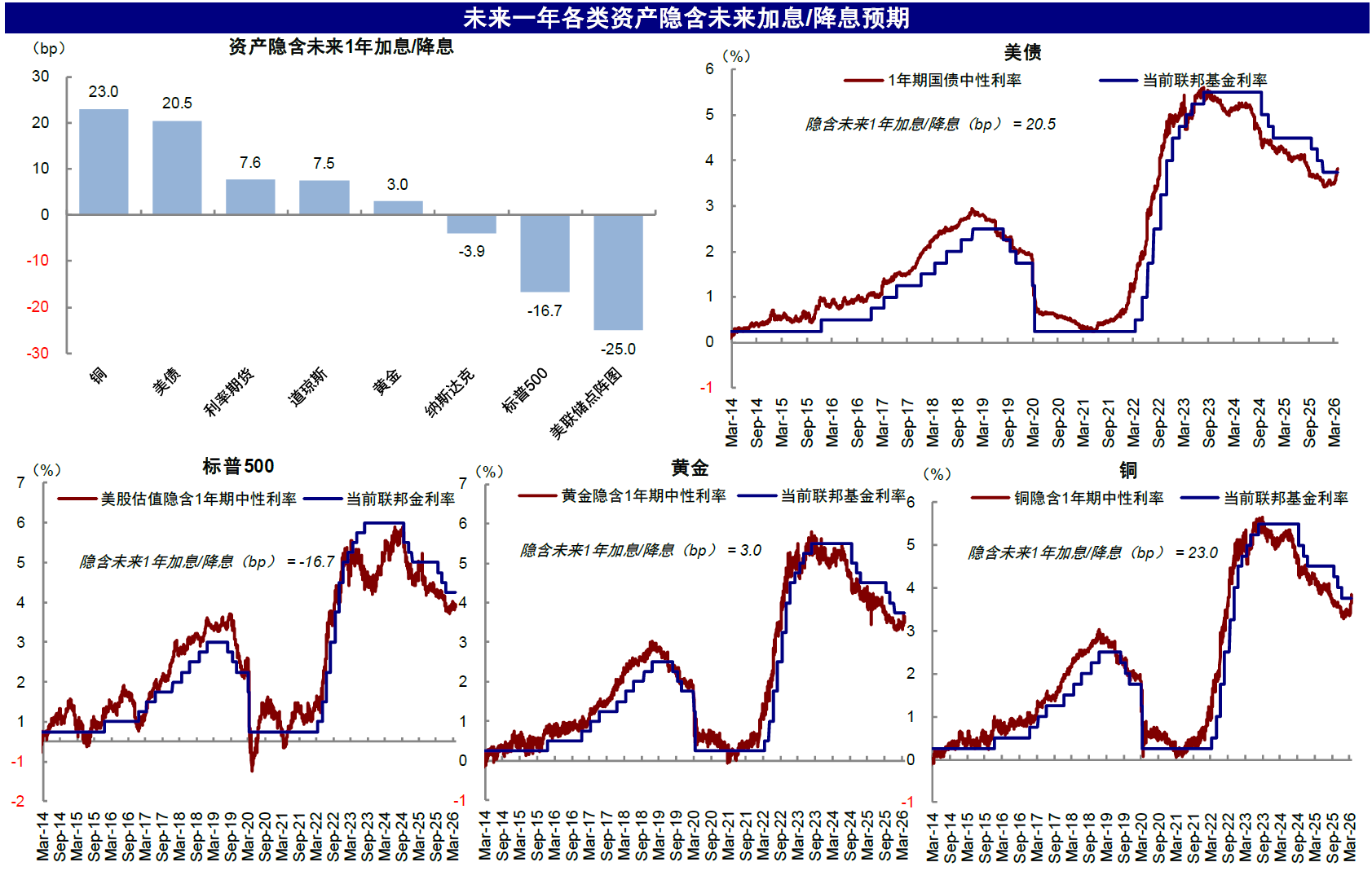 定价较充分:美债、黄金、铜等(隐含降息预期弱/加息预期强);