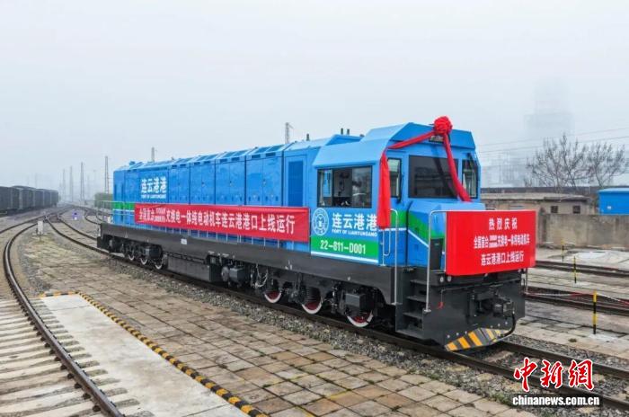 3月30日,伴随着嘹亮的鸣笛声,全国首台3000千瓦充换电一体纯电动机车缓缓驶入连云港港口铁路编组场,正式上线运行。