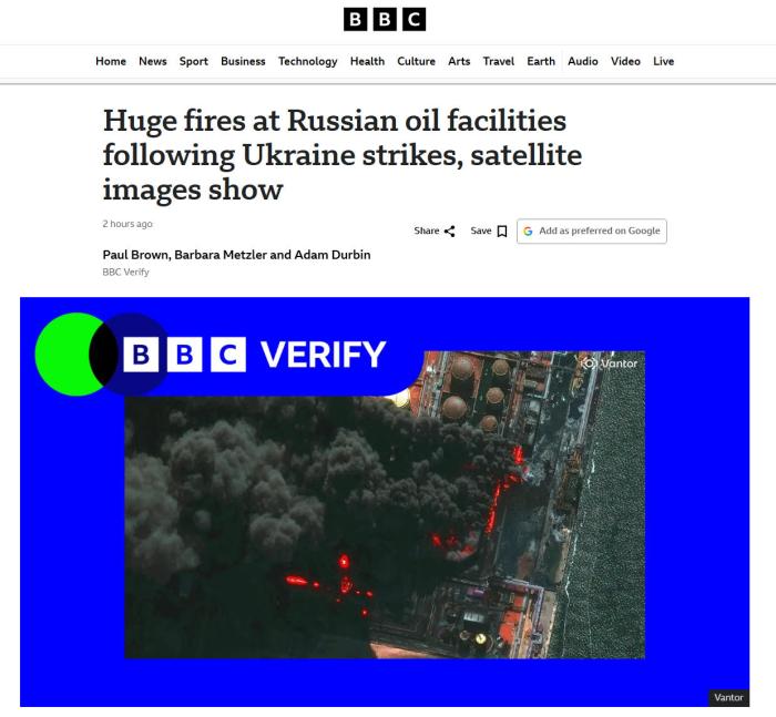 据英国广播公司(BBC)31日报道,卫星图像和经核实的视频显示,近日,乌克兰多次袭击波罗的海附近俄罗斯重要的石油出口基础设施,导致一些设施燃烧数日。