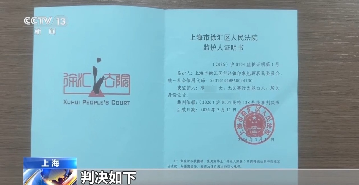 3月11日,上海市徐汇区人民法院作出判决,正式指定印象旭辉居委会担任她的监护人。