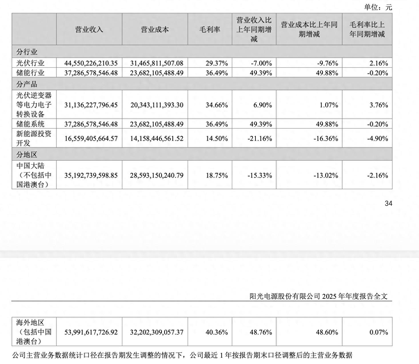 分行业看,储能在阳光电源的营收比重进一步提升,由2024年的32.06%升至去年的41.81%;光伏行业营收占比从2024年的61.53%降至49.95%。