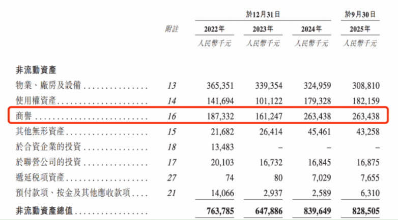 与此同时,公司高商誉风险同样不容忽视。截至2025年9月末,同仁堂医养商誉账面价值高达2.63亿元,商誉主要来自三溪堂、上海承志堂等并购标的。若这些并购标的后续业绩不及预期,商誉减值将对公司盈利形成直接冲击,进一步加剧其经营压力。