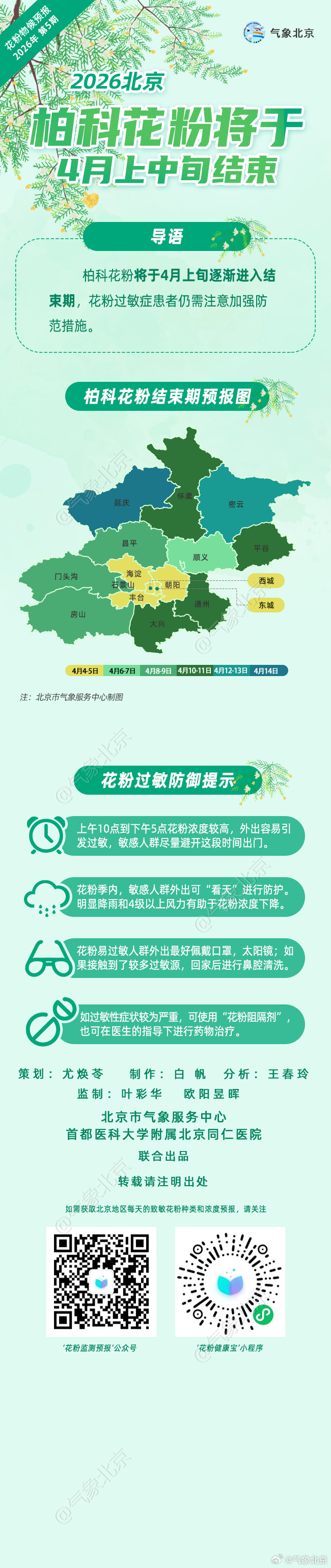 据气象北京消息,柏科花粉将于4月上旬逐渐进入结束期,花粉过敏症患者仍需注意加强防范措施。