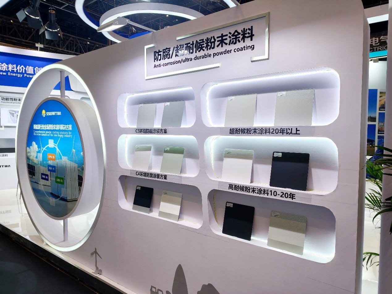 在本次展会上,针对新能源装备户外长期运行的防腐需求,盛达粉末推出符合C3、C4、C5等级的防腐/超耐候粉末涂料,包含底粉及面粉一体化解决方案,有效抵御盐雾、酸雨、紫外线等侵蚀,延长设备使用寿命,适配海上、高湿、风沙等恶劣环境。
