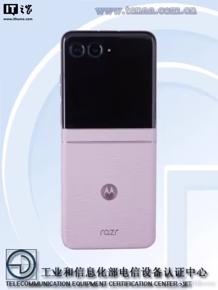 IT之家曾于 3 月 10 日报道,摩托罗拉 razr 70 小折叠手机已现身工信部,并展示了“非洲紫”(African Violet)配色。