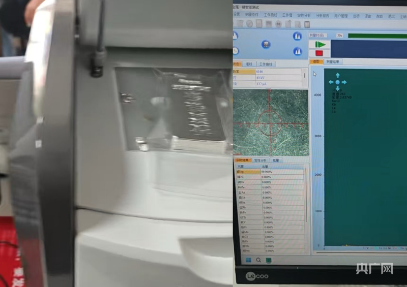 王超表示:“我们现在检测银基本上是两种方法,一种是无损,一种是有损。无损检测是用X荧光测试,也就是光谱仪测试,还有一种密度测试,测试它的比重。另外一种有损检测就是用化学方法检测,需要在银条上破坏一个部位,打一个眼进去,或者把它对半锯开,定点采样再进行检测。在不破坏银条的情况下,用X荧光只能测很表层的部位,如果它是用一定厚度的银去包铜或者包铅,是测不出来的。”