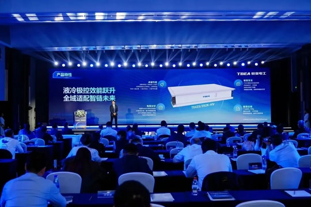 本次发布会的核心环节是新品发布仪式。在现场嘉宾的见证下,特变电工新能源正式推出新一代构网型大功率组串式液冷储能变流器与全新一代500kW组串式光伏逆变器。
