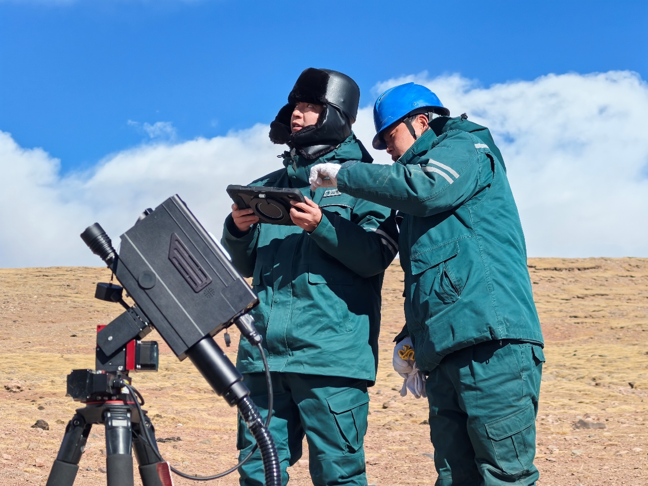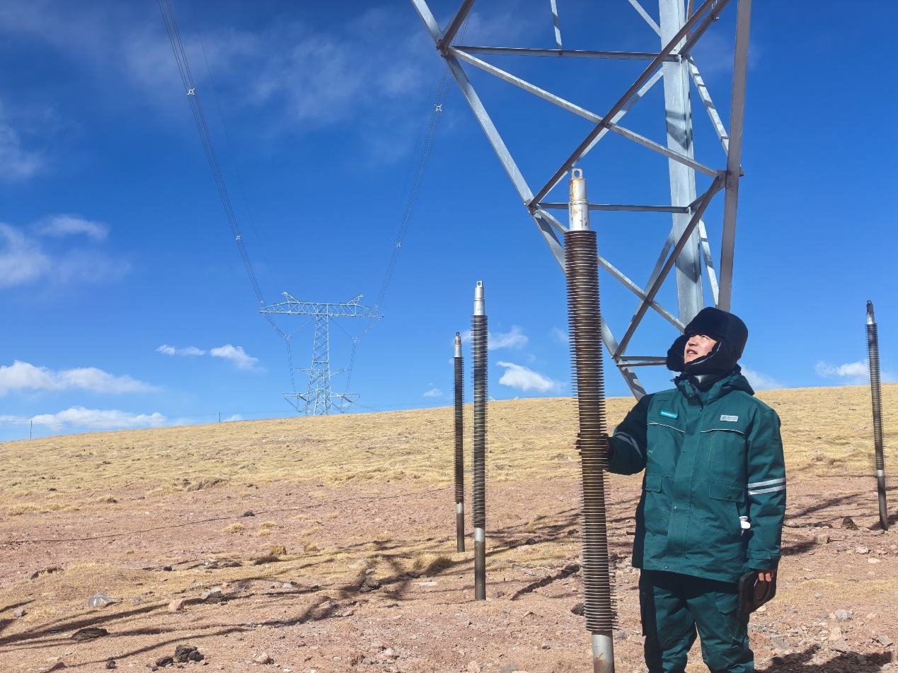 除了无人机巡检,他们还化身高原冻土的“把脉人”。针对冻土冻胀融沉对铁塔基础的威胁,他们坚持监测热棒、测量铁塔、分析数据,严密观测冻土变化;2025年,他们又引进北斗杆塔(地质)沉降监测终端,以高精度定位技术,实时监测铁塔的位移、倾斜、沉降,为精准运维提供科学依据,让1394基铁塔在冻土之上岿然不动。