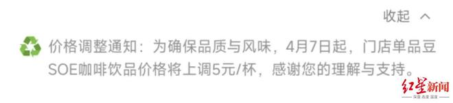 4月3日,Manner咖啡相关工作人员告诉红星资本局,上述产品涨价的消息属实,其他产品价格不变。SOE单品豆咖啡饮品调价核心原因是将选用品质更优的咖啡豆,为消费者提供更出色的风味体验;“绿野仙踪”调价是因为出了新版。同时,Manner全国所有门店一直以来的"自带杯减5元优惠"不变。