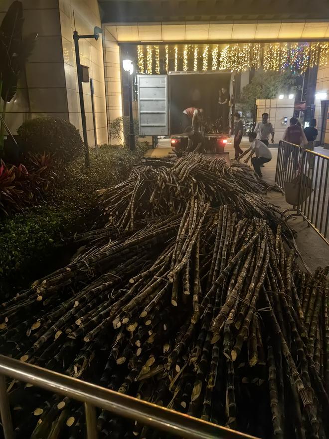 深圳一小区物业前往产地现砍,当天运回的新鲜甘蔗。
