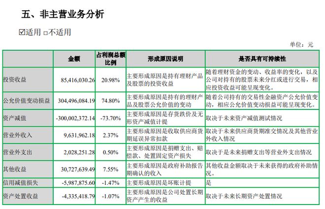 细分来看,投资收益为8541.6万元,公允值变动损益为3.04亿元,两者合计占利润总额的比例超过95%。