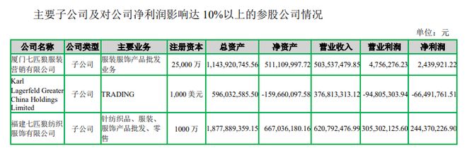 但在2025年,公司三个主要子公司中,Karl Lagerfeld公司成为唯一亏损的子公司,净利润为-6649.18万元,主要原因是报告期计提无形资产减值损失8279.25万元;截至报告期末,该公司净资产为-1.6亿元。