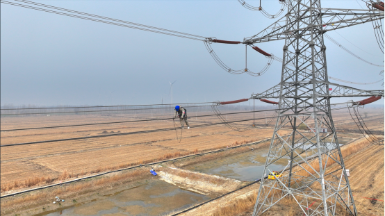 4月7日,500千伏渠芦一线同塔线路挂线完成。该线路是“同塔双回”设计,目前单回运行,本次施工借着天津北1000千伏特高压变电站建设时机,开始对另一侧线路进行挂线施工,线路投运后将成为该特高压变电站的两条500千伏出线。