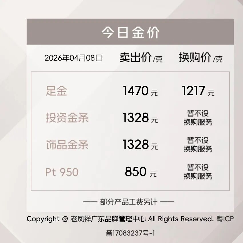 当日,老凤祥足金饰品价格由前一日的1435元/克上调至1470元/克,上涨35元。