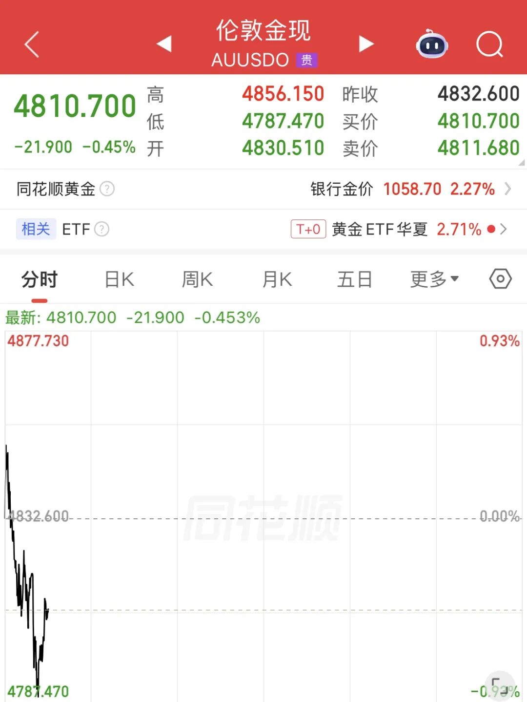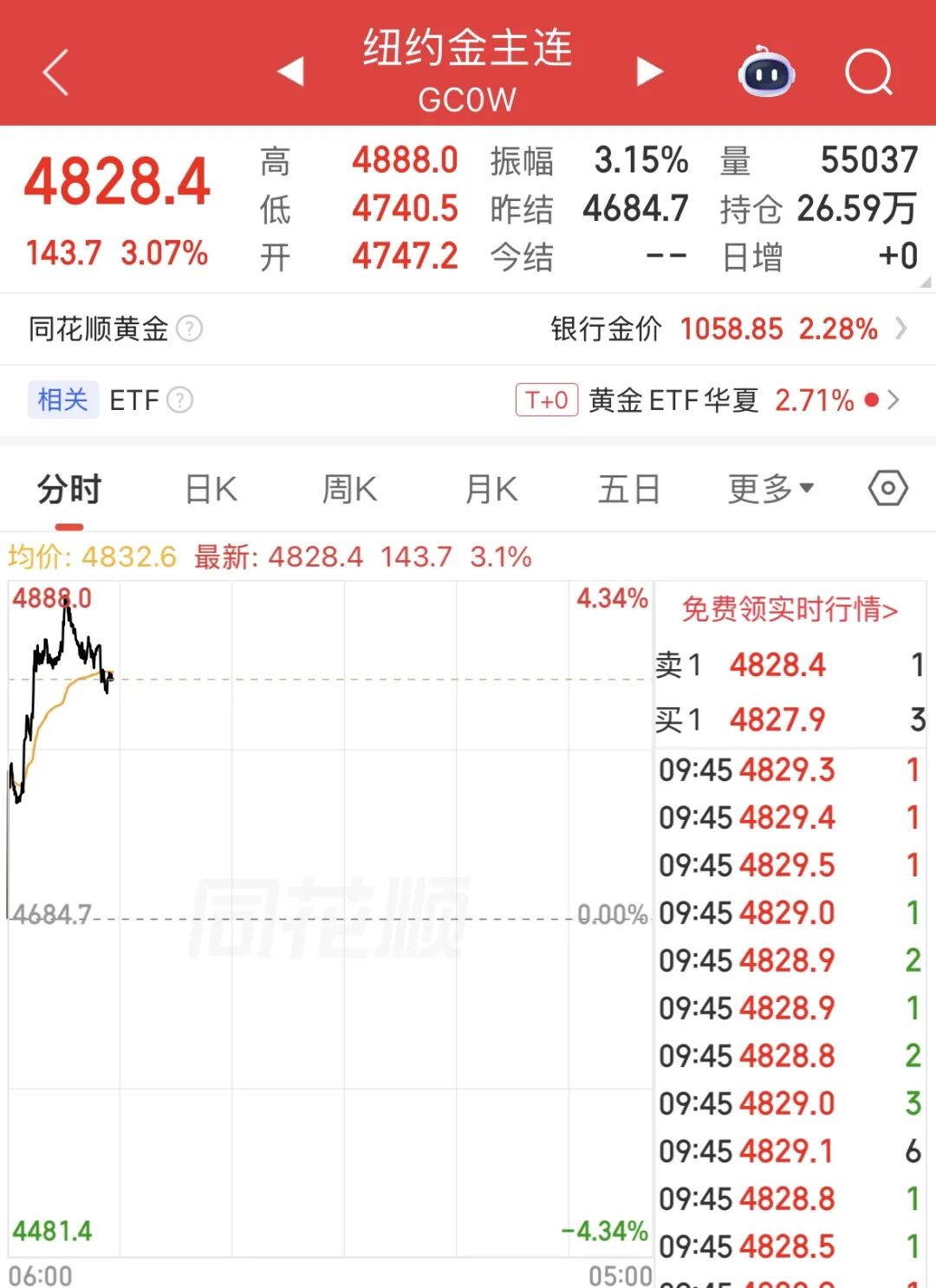 4月8日早盘,国际金价大幅高开,重回4800美元关口。截至上午10时,国际黄金期货涨超3%,报4828.4美元/盎司;现货黄金跌0.45%,报4810.7美元/盎司。