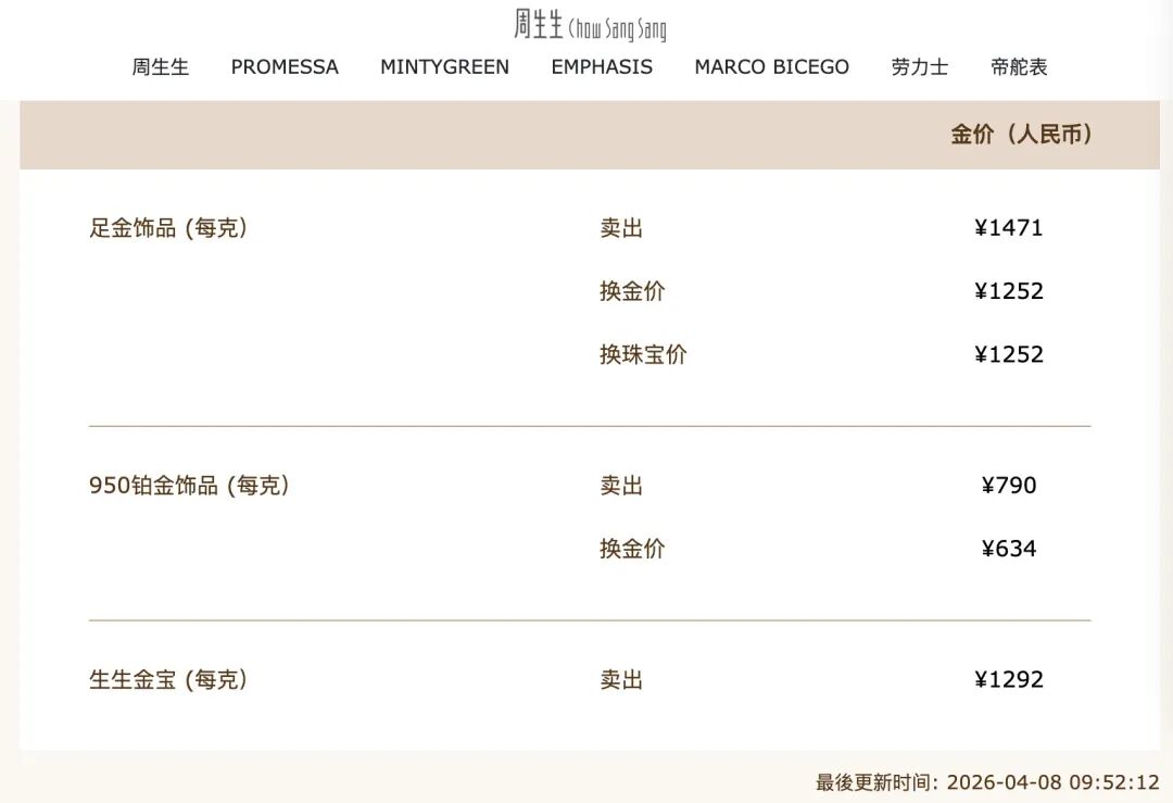 周生生足金饰品价格由1434元/克上调至1471元/克,上涨37元。