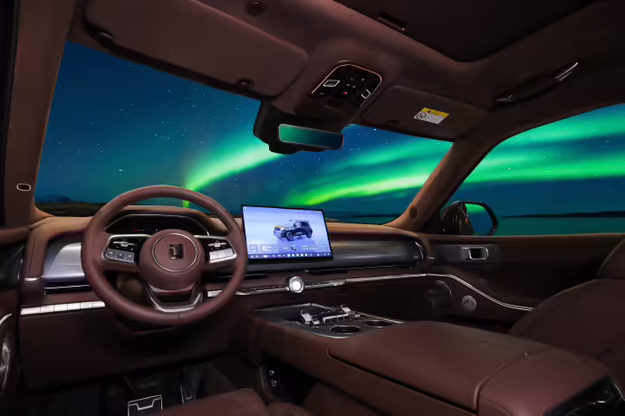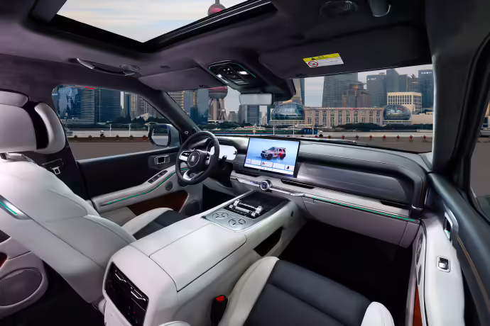 座舱方面,新车配备 12.3 英寸 2K 仪表屏及 15.6 英寸 2.5K 中控屏,车辆后排搭载 17.3 英寸 3K 吸顶娱乐屏以及 7 英寸后排扶手屏。内饰方面其中前排座椅提供 20 向电动调节,后排可实现 141° 无极电动调节,全车座椅均配备通风、加热、10 点位 3 层气袋按摩功能。