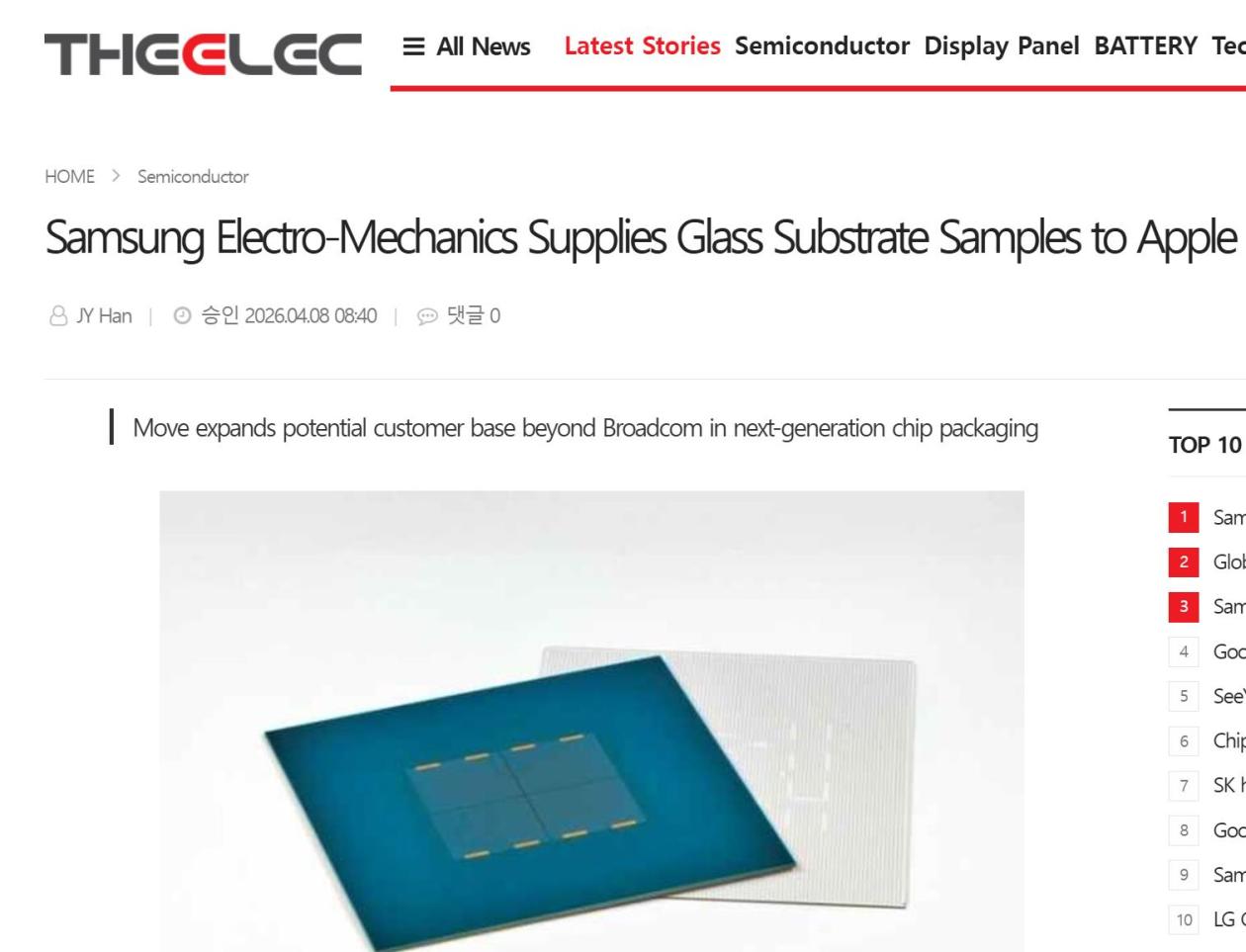 4月8日消息,据thelec报道称,三星电机已向苹果公司提供了用于半导体封装的玻璃基板样品。此举标志着三星电机正将其潜在客户群从博通扩展至终端用户,加速在下一代芯片封装领域的布局。