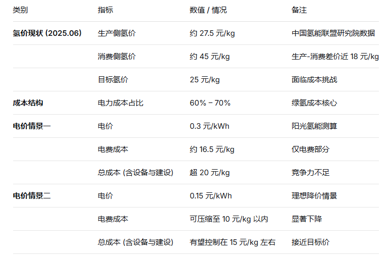 绿氢发展的核心梗阻是成本竞争力不足。中国氢能联盟研究院数据显示,2025年6月底,全国生产侧氢价指数约27.5元/千克,消费侧则高达45元/千克,近18元的差价凸显出从生产到终端的成本传导堵点,也让25元/千克的目标面临挑战。