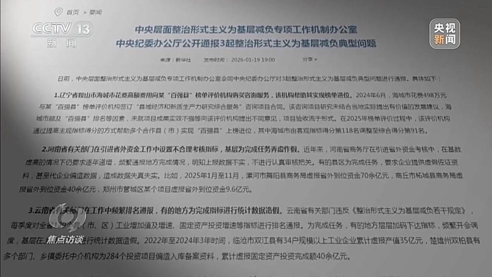中共中央党校(国家行政学院)教授 洪向华:从整个事件发生的过程看,每一个链条都有责任,这种责任造成了畸形的工作现象发生,就是层层给基层加码。这种造假、工作不负责的现象,都是在层层加码的情况下造成的,基层的敷衍塞责、敷衍应对,而产生的这种现象。数据造假我认为就是形式主义、官僚主义思想作祟引起的一种现象,它对经济社会发展的影响非常大,影响了营商环境,造成虚假营商环境。有关部门应该对这个事儿要警醒,举一反三。