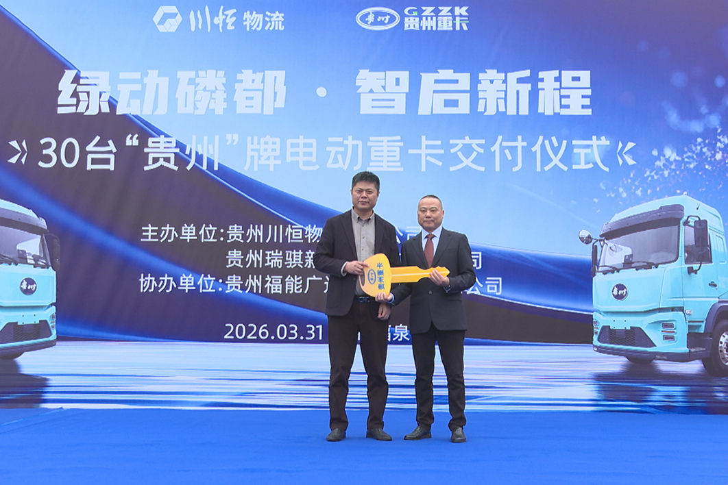 交付仪式上,贵州川恒化工股份有限公司相关负责人介绍了企业绿色物流转型整体布局。作为省内磷矿开发与磷资源精深加工的重点企业,贵州川恒化工股份有限公司始终坚持绿色发展理念,将物流运输的低碳化、电动化转型作为战略方向,积极助力“电动贵州”建设。此次批量采购30台本土“贵州”牌电动重型卡车,是企业推进物流低碳化的关键举措,也是打造区域绿色运输合作典范的关键一步。