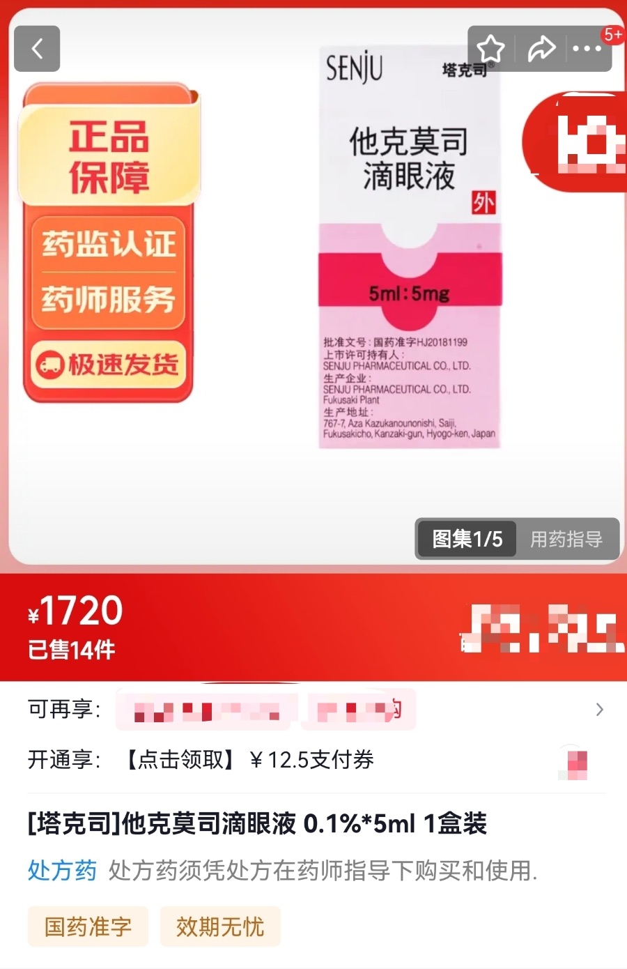 国家药监局数据显示,他克莫司滴眼液是一款进口原研药,上市许可持有人为日本制药企业SENJU PHARMACEUTICAL CO., LTD.(千寿制药株式会社),境内责任人为千寿制药科技(北京)有限公司。