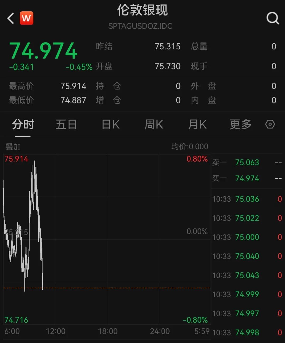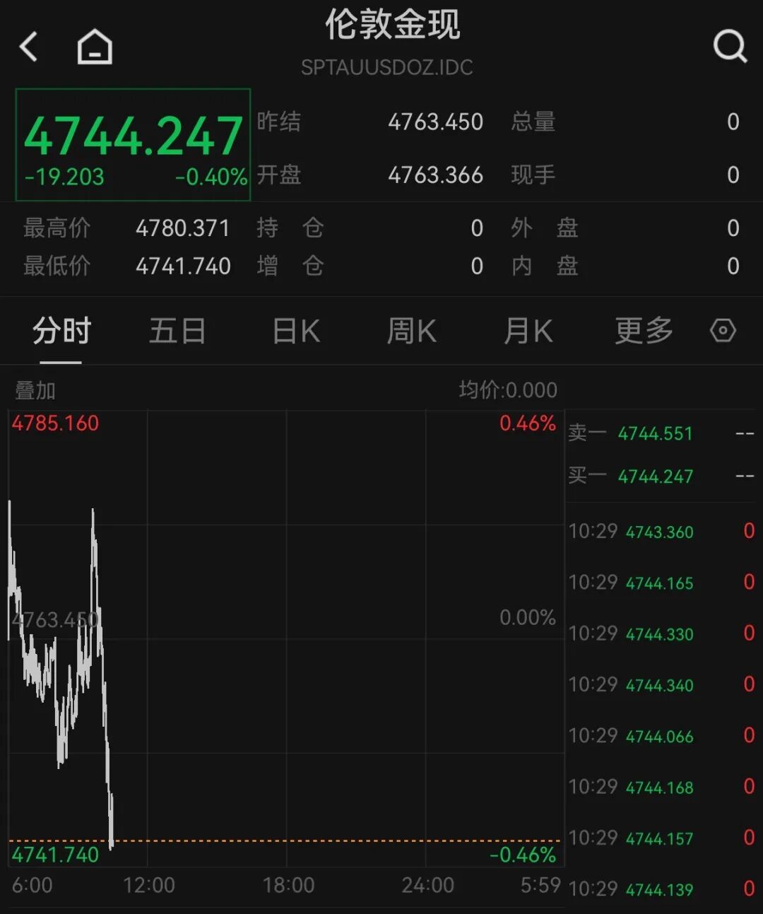4月10日,现货黄金、白银短线下挫。截至发稿,现货黄金失守4750美元/盎司,日内跌0.4%。