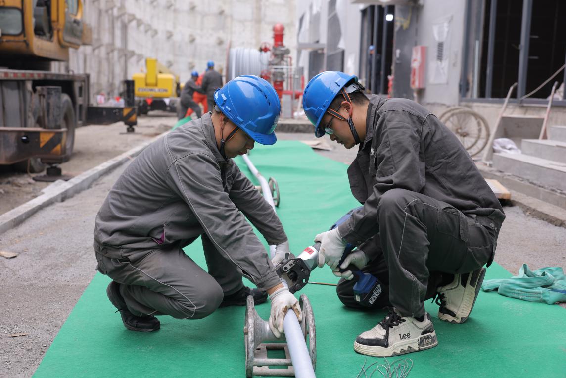 不仅争分夺秒抓进度,施工项目部还坚持创新补短板。针对传统工艺中母线穿墙部位防火、防水效果不佳的技术难题,施工项目部创新采用了“防火隔板内外镶嵌+进口防水胶封边+中间填充耐火包”的复合处理工艺,并兼顾了运行后的实用性与美观性效果,构筑起穿墙部位的防火、防水屏障。