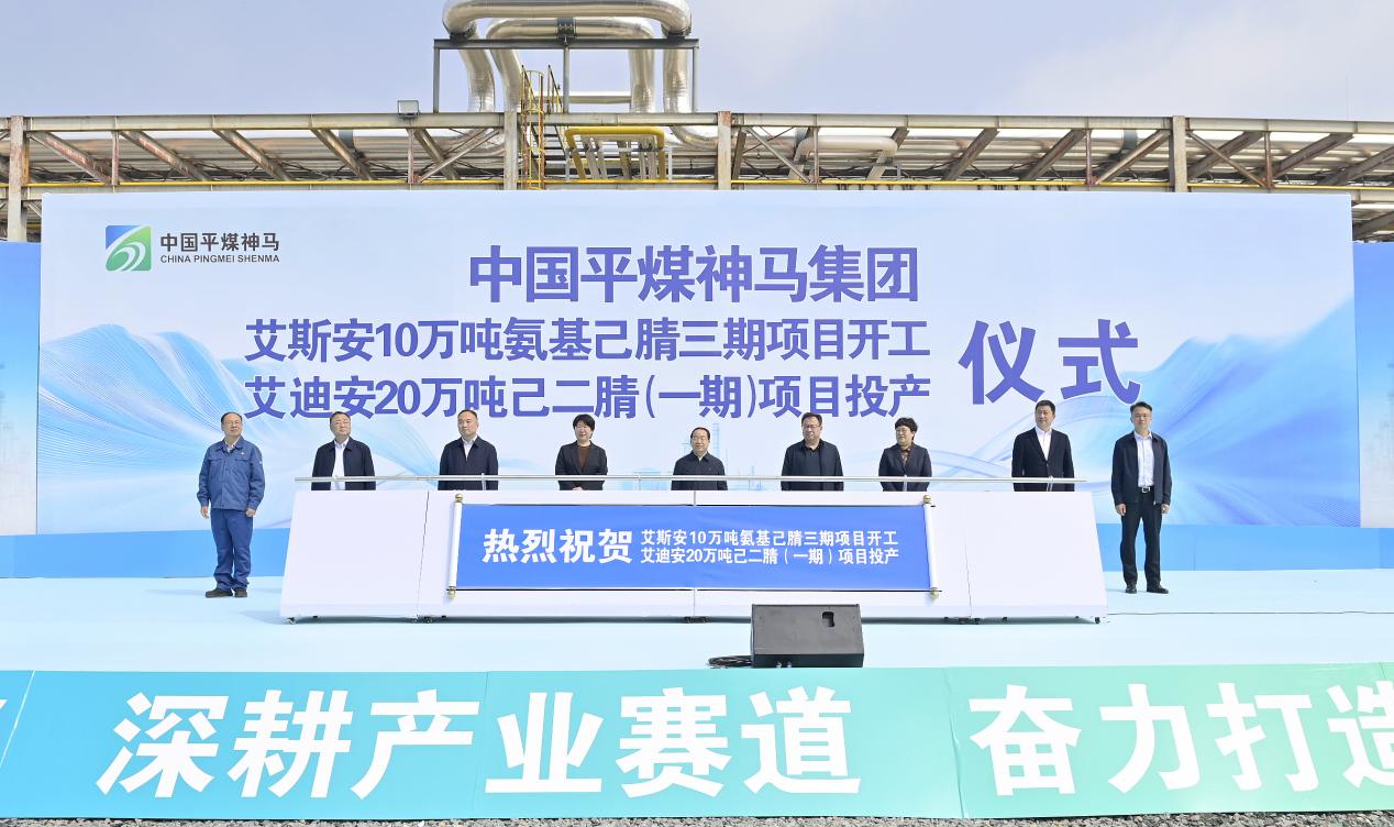4月9日,中国平煤神马集团艾斯安10万吨氨基己腈三期项目开工、艾迪安20万吨己二腈(一期)项目投产仪式在平顶山尼龙新材料开发区举行,这标志着我国尼龙66 产业链关键原料难题实现协同突破,中国平煤神马集团成为全球唯一同时掌握己二腈、氨基己腈两大自主核心技术的企业,为我国尼龙产业自主可控与战略安全筑牢关键支撑。