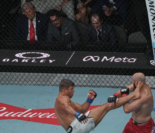 据报道,特朗普几乎全程就坐在座位上,面无表情看着台上的比赛。据称,特朗普并没有摆弄手机,鲁比奥似乎在处理相关事务并让总统看自己的手机屏幕。特朗普看完屏幕后没有流露出失望或愤怒的情绪。相反,他还对着镜头挤出一丝僵硬的笑容,并向比赛获胜者竖起了大拇指。