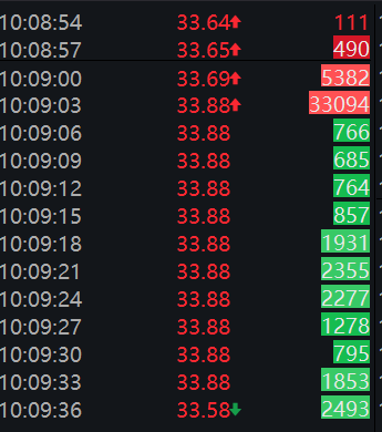 Wind成交明细显示,4月10日,多空双方围绕西藏矿业持续博弈。开盘后,该股的买入量明显增加,9点30分合计买入近1.19万手,买方力量强劲,当天10:09:03更是出现一笔显著的集中买单,达3.31万手,以33.88元/股成交,推动股价封板。