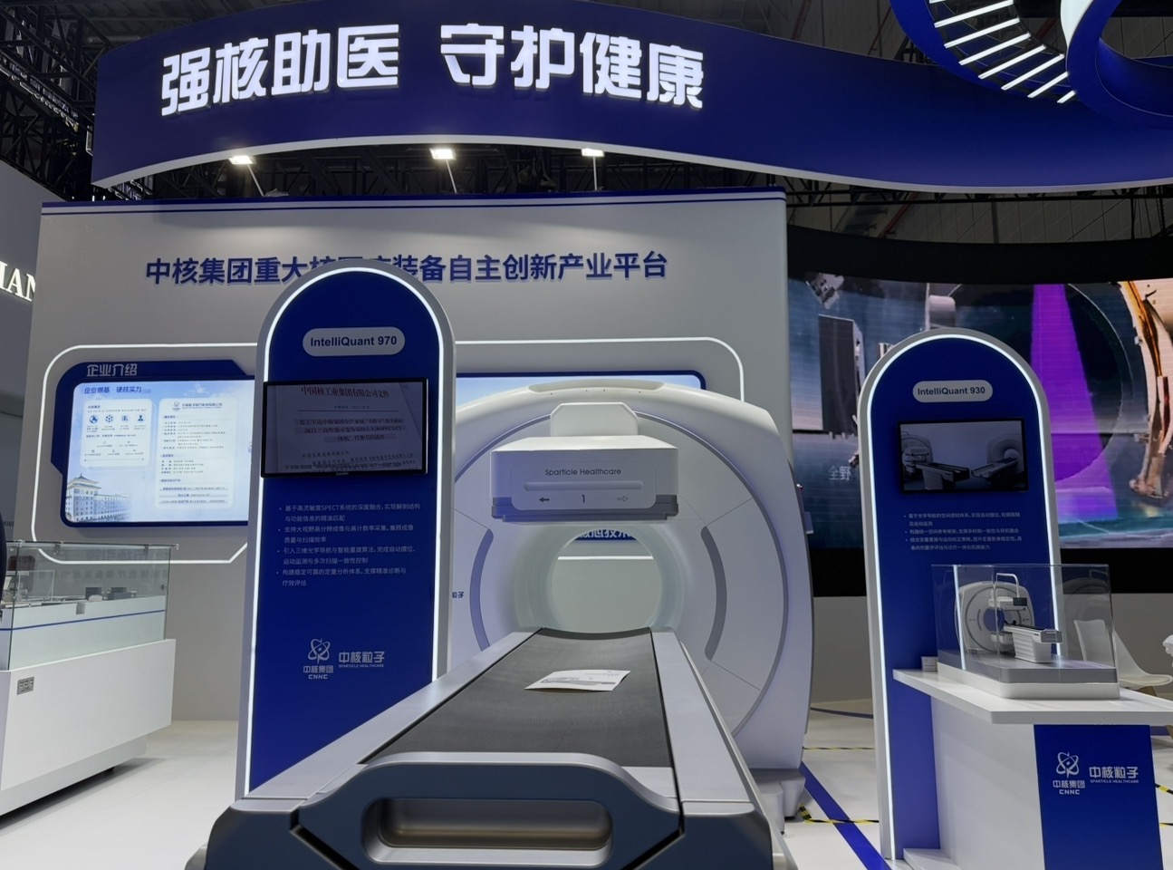 在CMEF展会上,第一财经记者注意到中核粒子展出了一台SPECT/CT设备。展台工作人员向第一财经记者介绍称,中核粒子作为中核集团旗下的核医疗装备研发与制造平台,已经依照国家核医疗产业发展战略布局,通过中核集团内部协同与资源整合,构建起“核素、核药、核医疗装备、核医疗临床服务”全产业链。