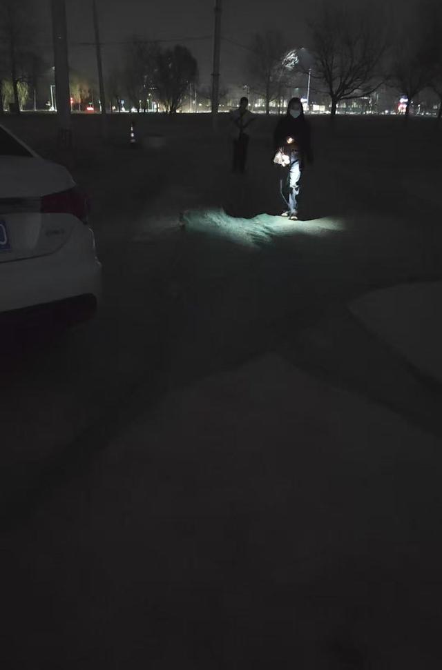 晚上行人经由土路通行时,只能打开手机的手电筒照明。