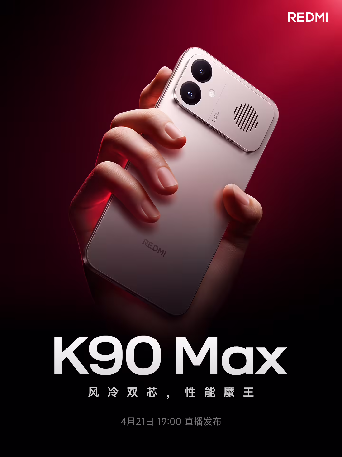 小米今日官宣,REDMI K90 Max 定档 4 月 21 日晚 7 点,官方宣传语为: